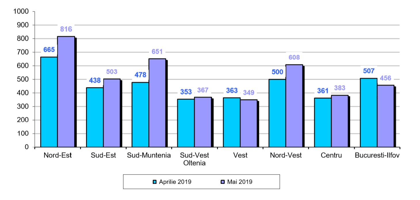 Mai 2019 comparativ cu aprilie 2019