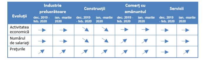 - Relativă stabilitate a activității în industria prelucrătoare, comerțul cu amănuntul și servicii