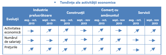 Tendințe în evoluția activității economice în perioada septembrie – noiembrie 2019
